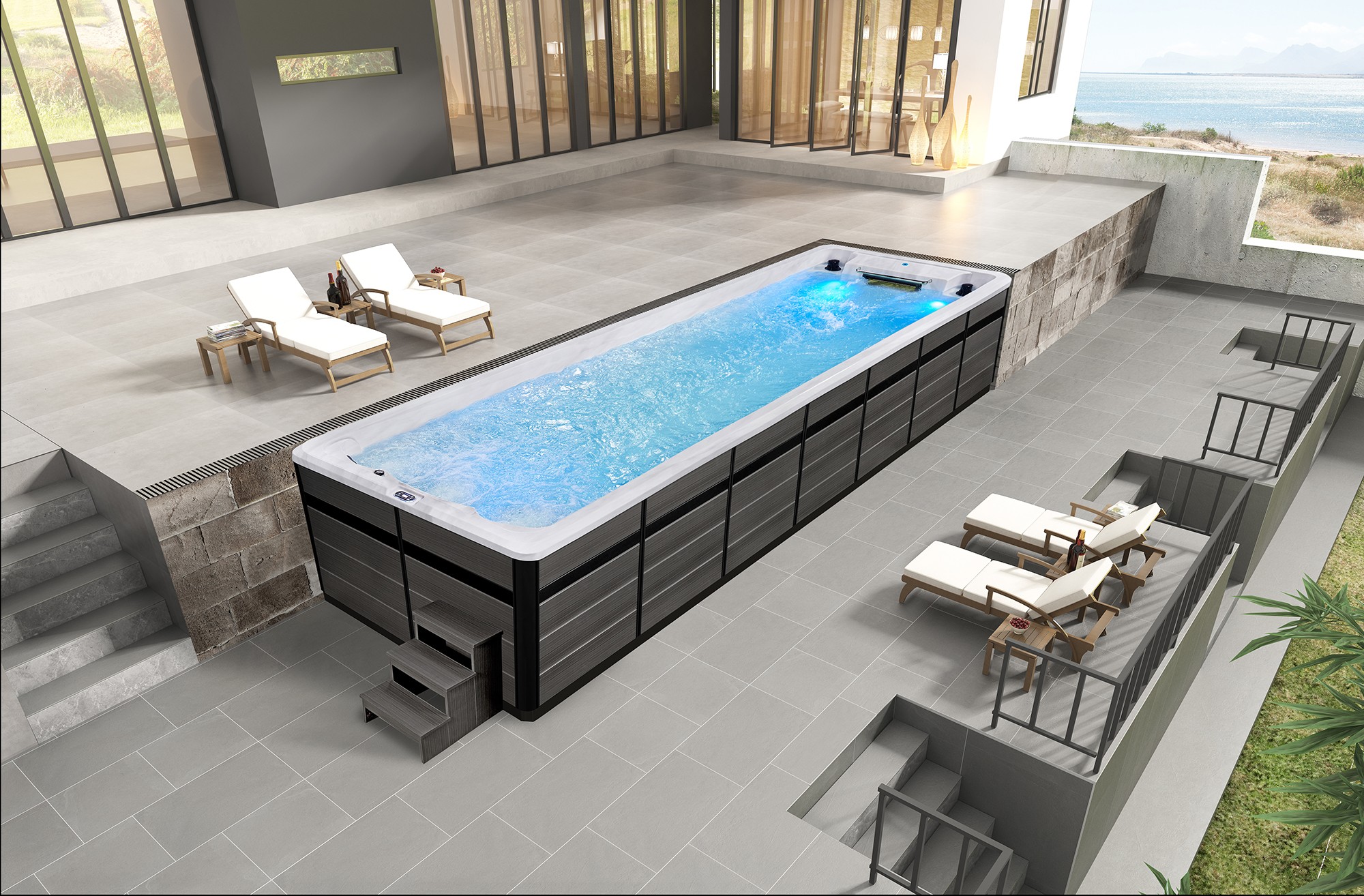 Премиальный дизайн бассейнов создаёт впечатление современного, технологичного и дорогого продукта. Лаконичные формы, изысканная отделка и эргономика чаши подчёркивают, что перед вами оборудование высокого уровня, рассчитанное на долгую эксплуатацию без компромиссов.