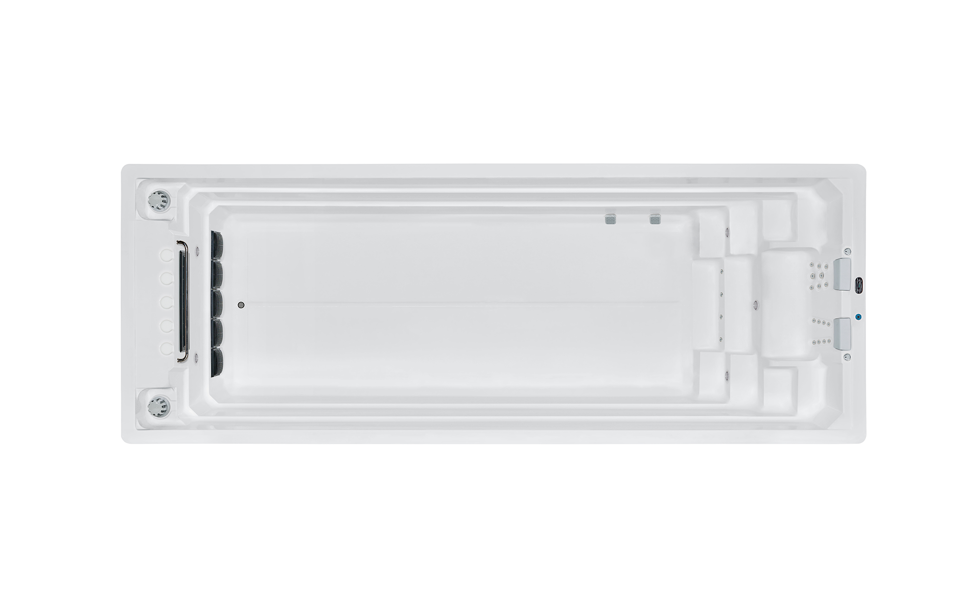 Премиальный дизайн бассейнов создаёт впечатление современного, технологичного и дорогого продукта. Лаконичные формы, изысканная отделка и эргономика чаши подчёркивают, что перед вами оборудование высокого уровня, рассчитанное на долгую эксплуатацию без компромиссов.