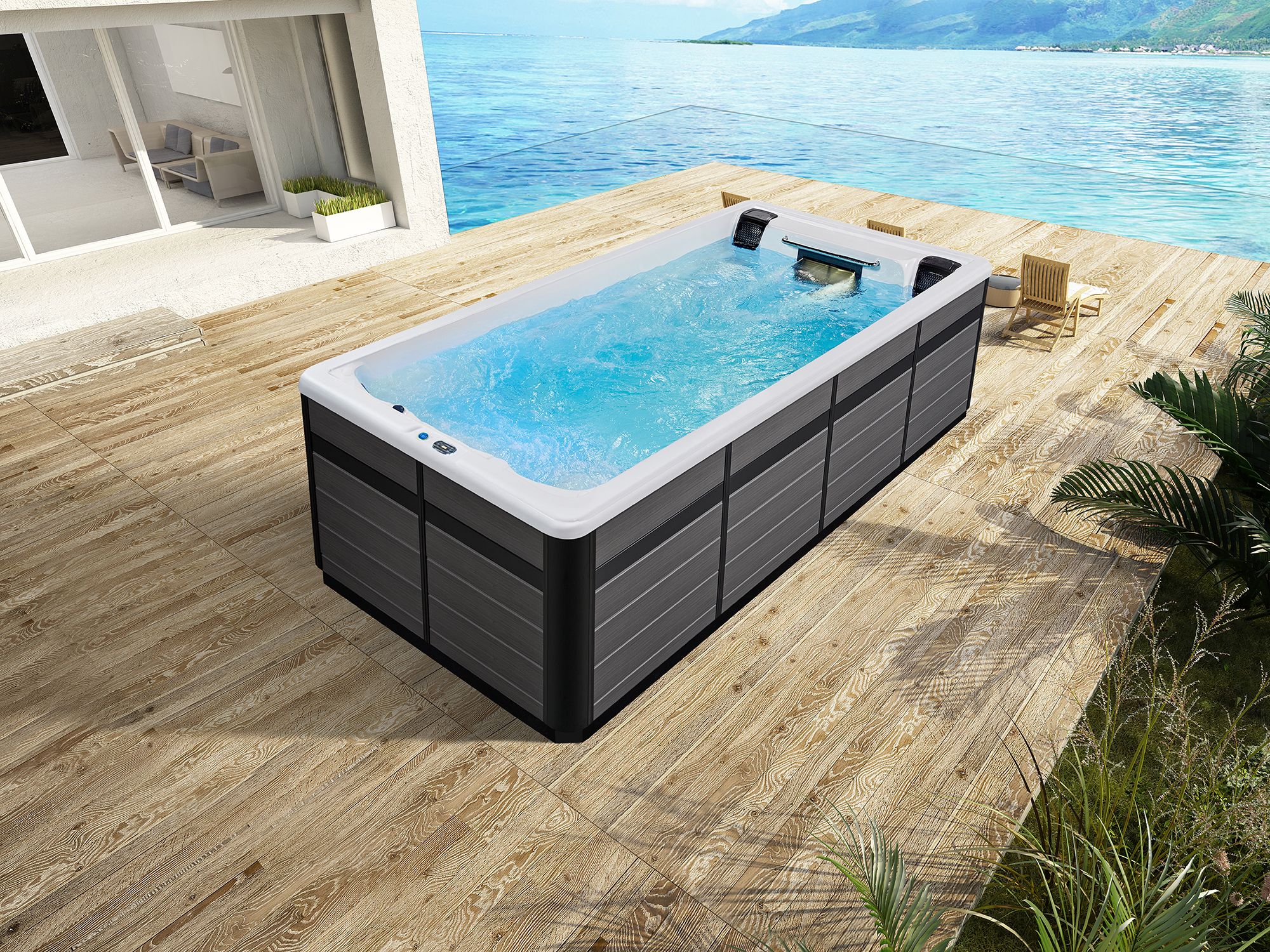 Victoria Star удачно сочетают спортивный функционал и элементы SPA. Противоток обеспечивает полноценную тренировку в ограниченном пространстве, а гидромассаж на 3 места помогает восстановить силы и расслабиться после нагрузки. Это делает бассейн универсальным: он одновременно подходит для активных занятий и для отдыха.