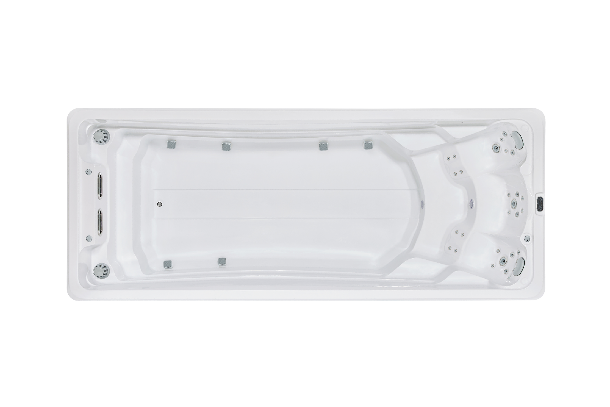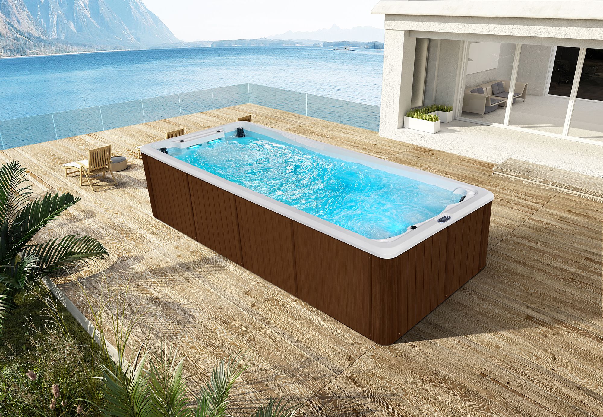 Благодаря продуманной конструкции и встроенной системе противотока бассейн позволяет полноценно заниматься плаванием даже на ограниченной площади. А встроенные гидромассажные форсунки превращают его в многофункциональную зону отдыха для 3х человек, где тренировка плавно сменяется расслаблением. Такой формат идеально подходит как для частного дома, так и для глэмпинга, баз отдыха и современных гостиничных комплексов, которые хотят предложить своим гостям больше, чем стандартный набор услуг.
