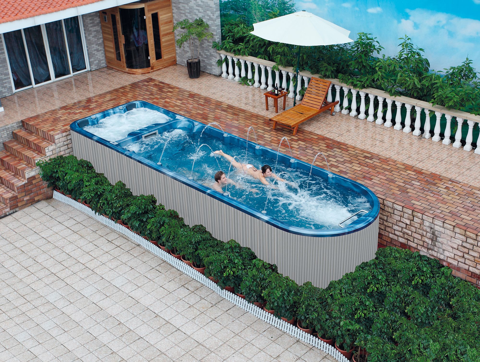 Благодаря продуманной конструкции и встроенной системе противотока бассейн позволяет полноценно заниматься плаванием даже на ограниченной площади. А встроенные гидромассажные форсунки превращают его в многофункциональную зону отдыха, где тренировка плавно сменяется расслаблением. Такой формат идеально подходит как для частного дома, так и для глэмпинга, баз отдыха и современных гостиничных комплексов, которые хотят предложить своим гостям больше, чем стандартный набор услуг.